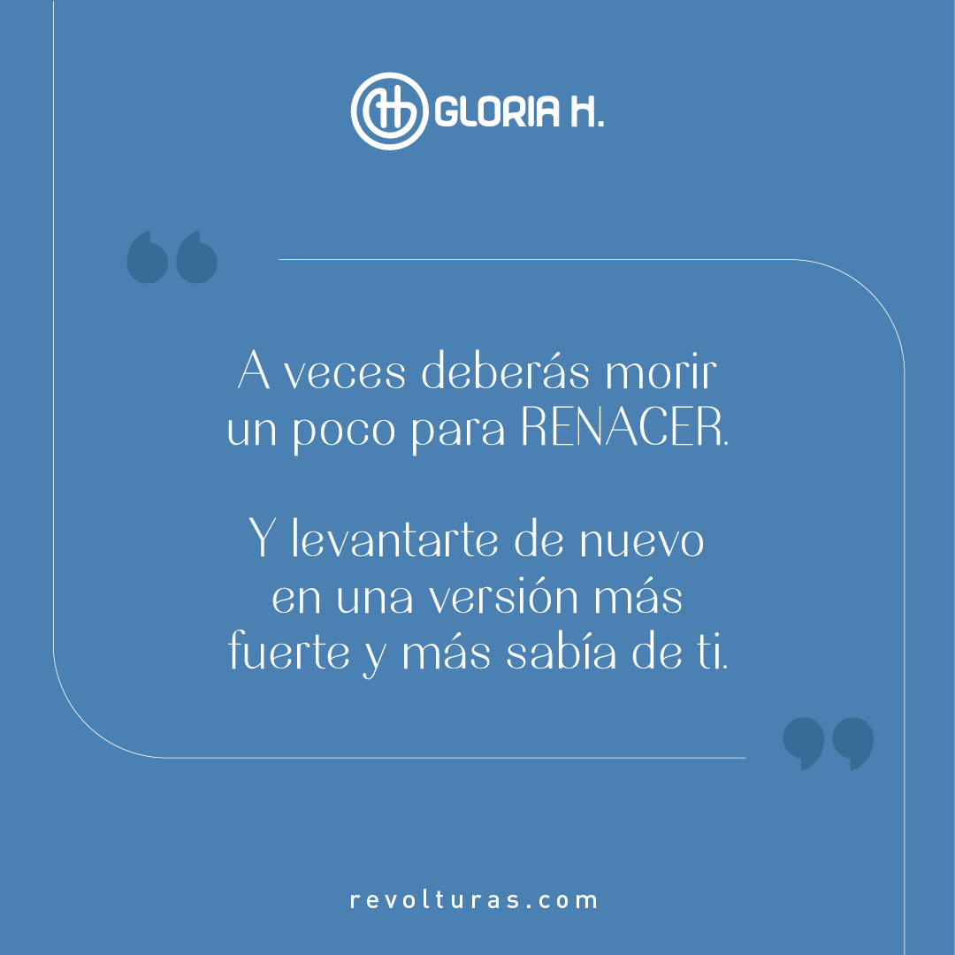 A veces deberás morir un poco para RENACER. Y levantarte de nuevo en una versión más fuerte y más sabía de ti. Gloria H. @GloriaHRevolturas 👌 💪 👍 😄 Contacto: 602 668 31 76 – 315 368 51 72